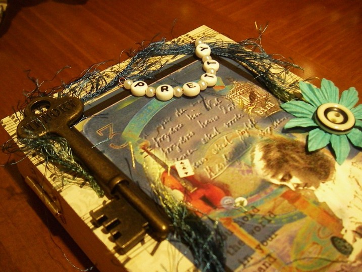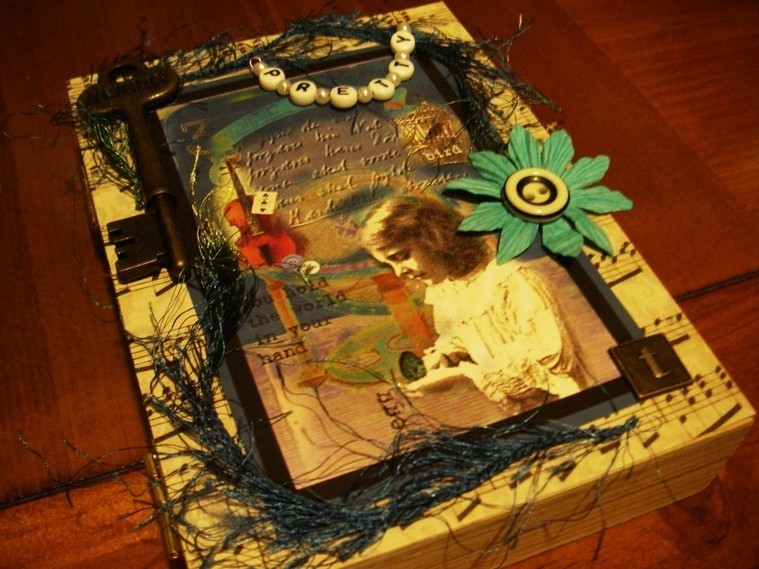 I made this mixed media box that included the picture, as well as commercial embellishments, a flower,