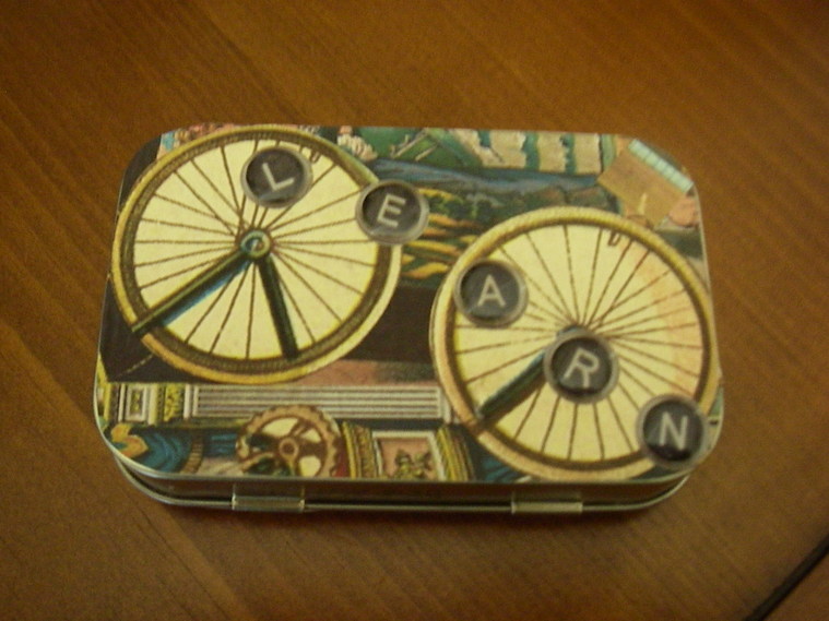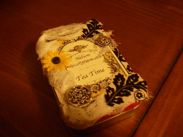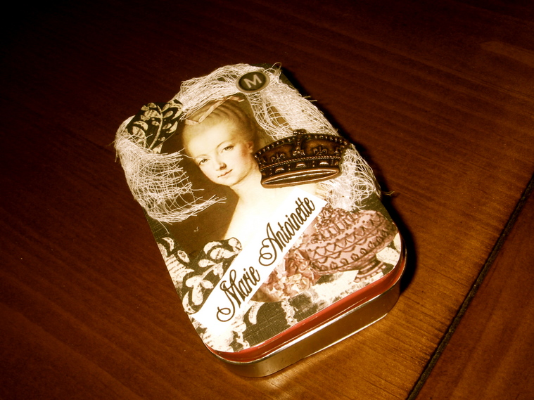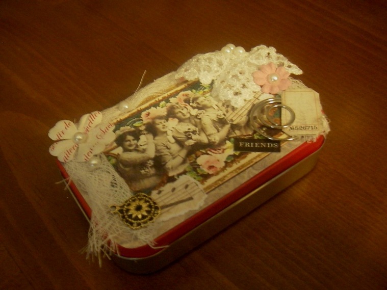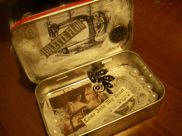 Hey fellow sorority sister, I figured that you are probably a woman who can pull out a sewing machine or paint brush in the morning and be flexible enough to go out on the town at night..(hence, the faux pearls inside the tin.)