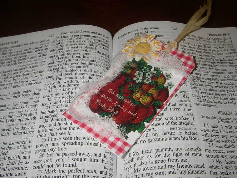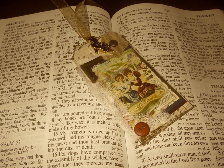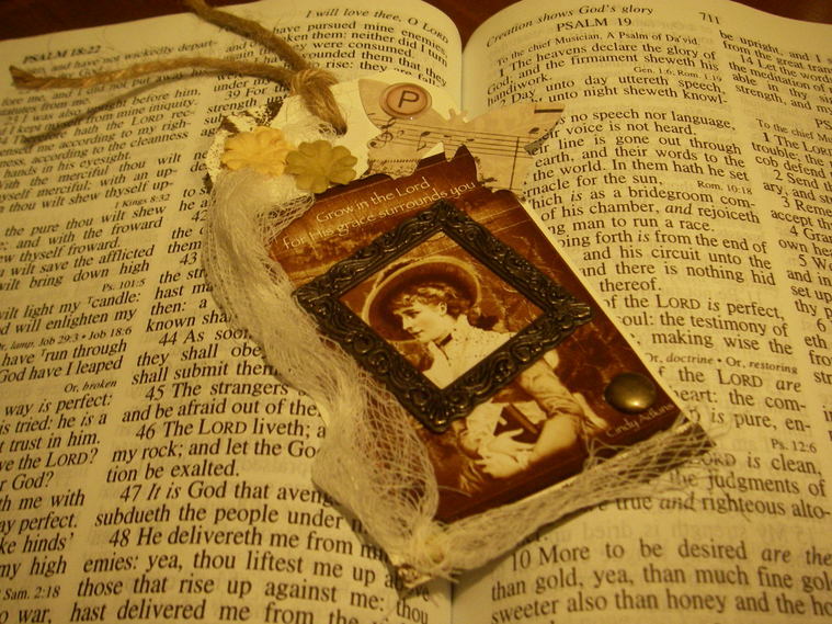a Bible tag. Also used commercial embellishments and paper.